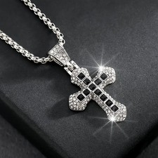 Rhinestone Cross Pendant Necklace Men Women Cross Necklace Jewelry US STOCK