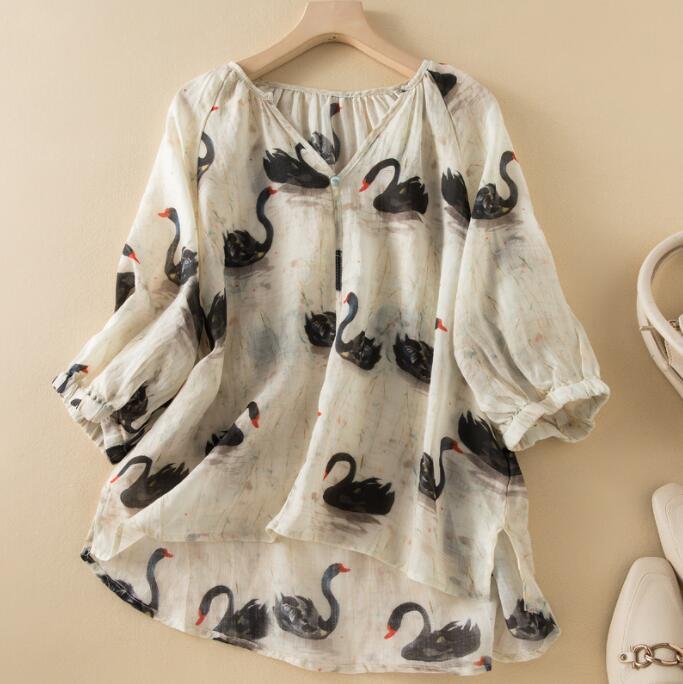 Women's 2024 Fashion Black Swan Print V Neck Half Sleeves Blouse Shirt Top HAP | ✔ Check At Store | $32.99 |