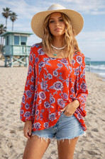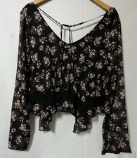 Women’s Floral Long Sleeve flowy lace beaded sz S top Cottagecore Boho career