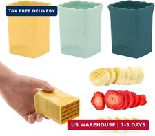 Fruit Slicer Cup - Strawberry, Banana, Grape Cutter, Egg Slicer for Hard Boiled Eggs - Detachable Fruit Slicer with Push Plate - Rapid & Safe Slicing Kitchen Gadgets for Easy Food Prep (Black). EXTRA-LARGE CAPACITY CUP : This fruit slicer is made with 304 stainless steel and food-grade materials for lasting durability.
