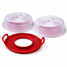 Microwave 2 Pack Splatter Cover Guard 10.5" w Caddy Plate Holder BPA Free Red | ✔ Check At Store | $13.95 |