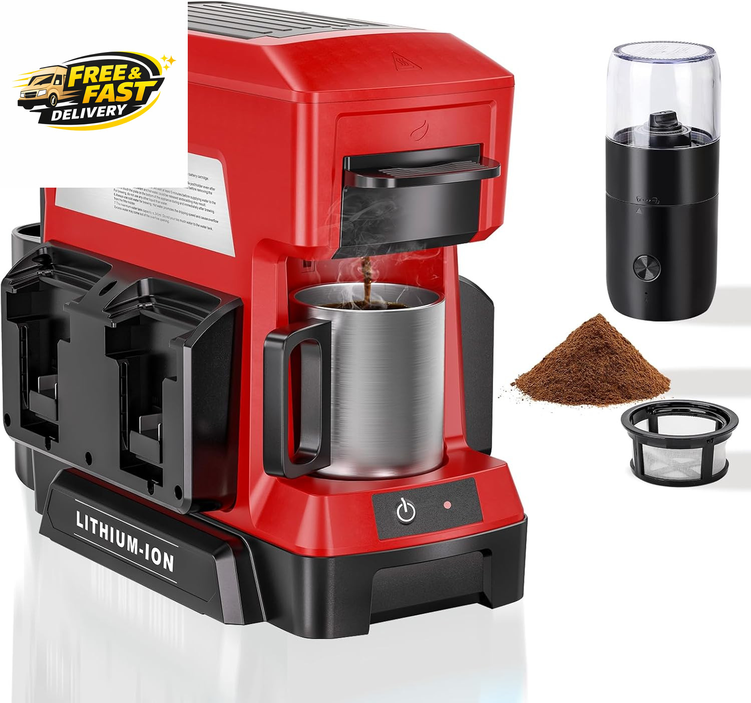 Cordless Coffee Maker for Milwaukee M18 18V Battery, Portable Drip Coffee Maker with Electric Coffee Grinder for RV, Camping, Travel, Car, Hiking (Battery Not Included). 【Cordless Coffee Maker】 - Portable Drip Coffee Maker is perfectly compatible with Milwaukee M18 18v batteries 48-11-1820 48-11-1840 48-11-1850 48-11-1862 48-11-1865 48-11-1880 etc.