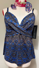 Miraclesuit Swimwear Thebes Allura Tankini Top Size 14 Blue Twist Front NWT | ✔ Check At Store | $49.00 |