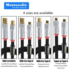 HiFi Audio USB Cable Pure Silver Core Type C to USB A USB B HIFI Cord