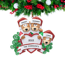 Personalized Brown Bear Family Kids with Heart Family of 3 5 Christmas Ornament | ✔ Check At Store | $18.95 |