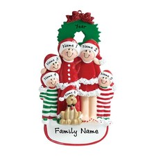 PERSONALIZED Pajama Family with Tan Dog - Family of 5 Christmas Ornament Gift | ✔ Check At Store | $19.99 |