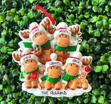Personalized Cutesy Moose Family of 3 4 5 Christmas Ornament with Kids Xmas Hat | ✔ Check At Store | $22.95 |