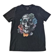 Guess T-Shirt Men Large Black Skull Floral Graphic Goth Short Sleeve - Small Fit | ✔ Check At Store | $7.88 |