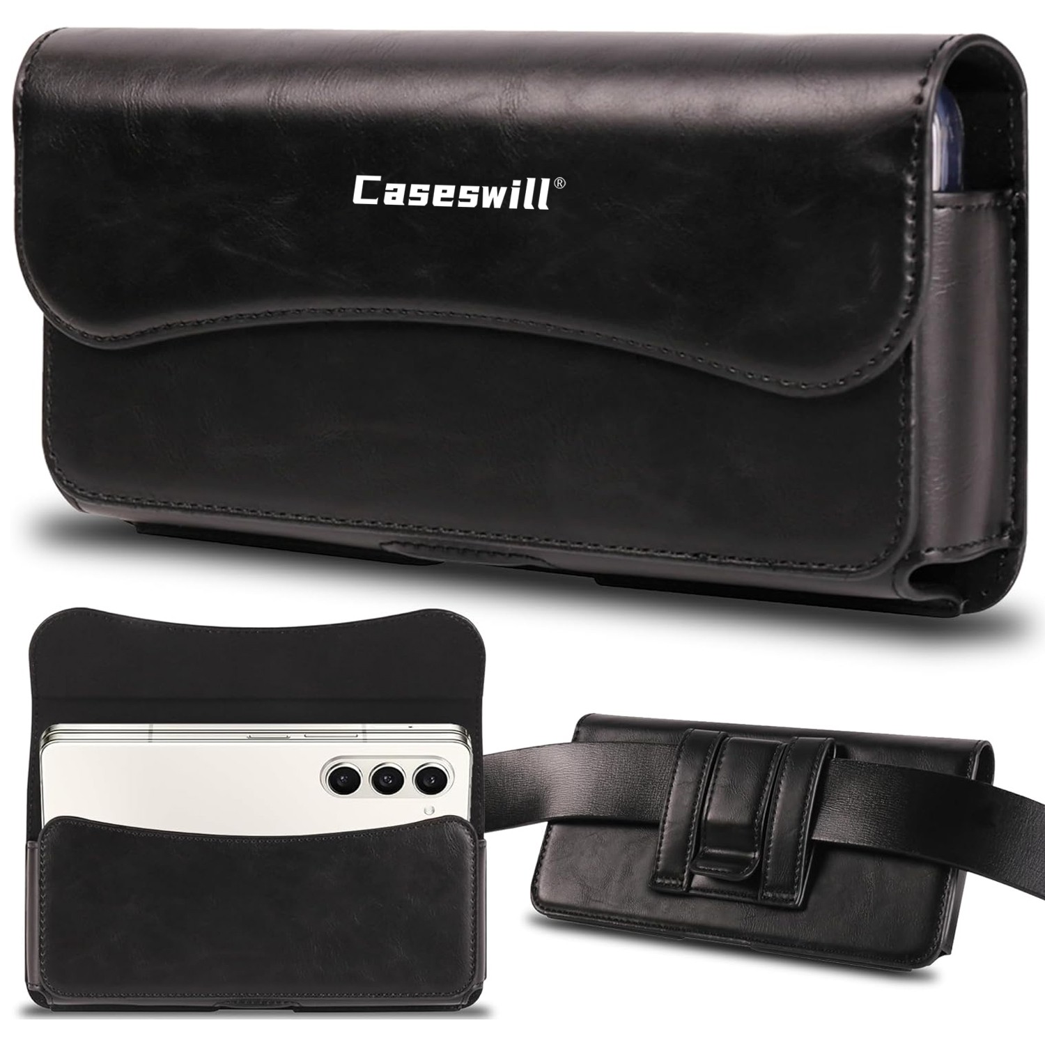 Caseswill® Premium Leather Phone Pouch with Belt Clip Holster For Xiaomi Redmi 15A 15C 15 14C 13C 12C 13 12 10C 10A 10. Two-Ways to Carry: The fold phone holster has a belt clip and double belt loop.