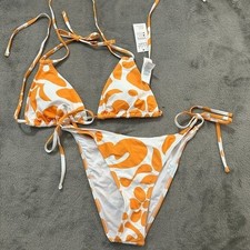 NWT Cupshe Womens Two Piece Swimsuit Medium White Floral Orange Blue Green Pink