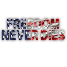 Freedom Never Dies Waving American Flag Lettering Cut To Shape Vinyl Sticker | ✔ Check At Store | $2.50 |