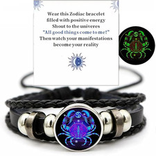The Zodiac Sign Spirit Bracelet is a handmade leather bracelet featuring a multicolor main stone representing the desire horoscope for the year 2025. This bracelet is designed with a round shape, magnetic closure, and various charm styles such as cuff, bangle, and charm. It is adjustable, stackable, and suitable for various occasions like weddings, anniversaries, birthdays, and holidays. With a personalized theme for each zodiac sign, this bracelet is a unique and meaningful gift for loved ones.