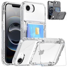 For iPhone 16e/17e Case Complete Rugged Protection Metal Stand + Tempered Glass