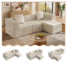 [DURABLE, EASY-CLEAN CORDUROY FABRIC]: Soft-touch ribbed corduroy is breathable, hypoallergenic, and stain-resistant. Upholstery FabricWrinkle-resistant corduroy fabric. [5-IN-1 MODULAR FREEDOM, CHAISE LEFT OR RIGHT]: Move the ottoman and seat blocks in seconds to create a roomy loveseat, L-shaped sectional, stretched-out chaise lounge, full-size guest bed, or casual floor seating.
