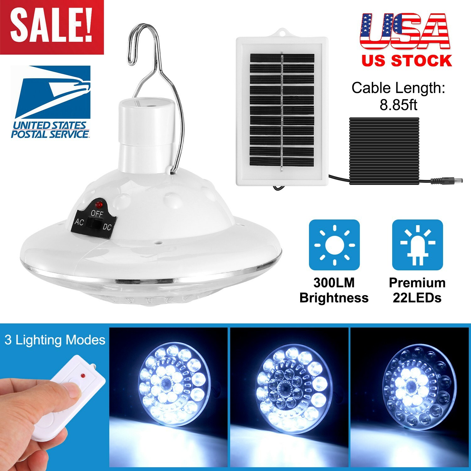 Product Type: Solar Light Lamp. Material: ABS + Acrylic (Lamp), Polysilicon (Solar Panel). Solar Panel: 6V/1W. Solar Panel: 12cm x 7.5cm x 1cm/4.72in x 2.95in x 0.39in (L x W x H). 1 x Solar Panel. LED Light Lamp Battery: Built-in 1 x 4V/1000mAh Li-ion Battery.