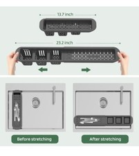【Stainless Kitchen Sink Caddy】 This kitchen sink size is 9.3"L x 4"W x 3.8"H. Made of 304 stainless steel with a black anti-rust surface coating has a play to prevent rusting and a long service life, even when used for long periods in wet conditions.