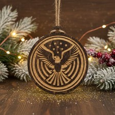 Patriotic Wooden Christmas Tree Ornament Eagle & Stars Rustic Holiday Decoration | ✔ Check At Store | $14.10 |