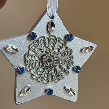 Handmade Bejeweled Star Wooden Christmas Ornament Embellished Rhinestone Silver | ✔ Check At Store | $15.00 |