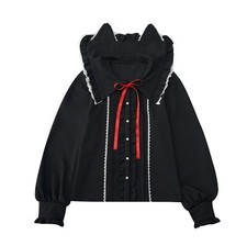 Kawaii Lolita Lace Blouse ! ✨ Pair it with our ruffle suspender skirts or JSKs for a full kawaii coord! ・🎀 Peter Pan collar with sweet lace trim. ・🩰 Long sleeves with ruffle cuffs. ・👗 Button-down front with scalloped lace ruffles.