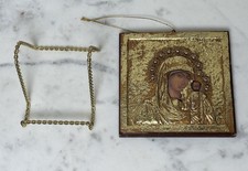 4.5"x4.5" Byzantine-style icon of the Virgin Mary and the Christ Child, known in the Eastern Orthodox tradition as the Theotokos in Eleousa or "Tender Mercy" style. It features a decorative metal overlay, known as an oklad or riza, which covers most of the painted surface, leaving only the faces and hands exposed It could be hang or used as an ornament on the christmas tree. Make a beautiful, memorable gift as well. There are 2 other listings with different pictures that would go wonderfully together Very well made