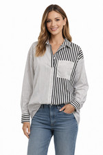 NWT French Connection Striped Boyfriend Shirt High-Low Hem Black Gray White XS | ✔ Check At Store | $38.99 |