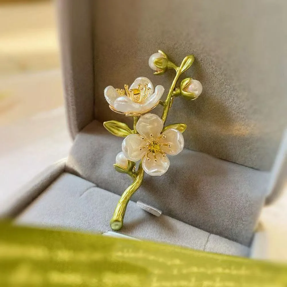 Trendy Rhinestones Plums Blossoms Brooches for Women Unisex Enamel Florals Pins Badges Office Party Gifts Jewelry Accessories
