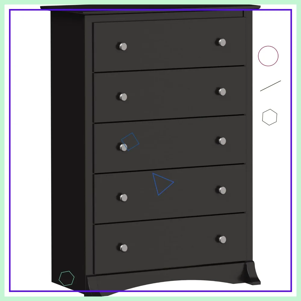 Spacious 5-Drawer Dresser for Bedroom, Black Finish, Measures 17.75"D x 31.5"W x 44.75"H - Stylish Chest of Drawers
