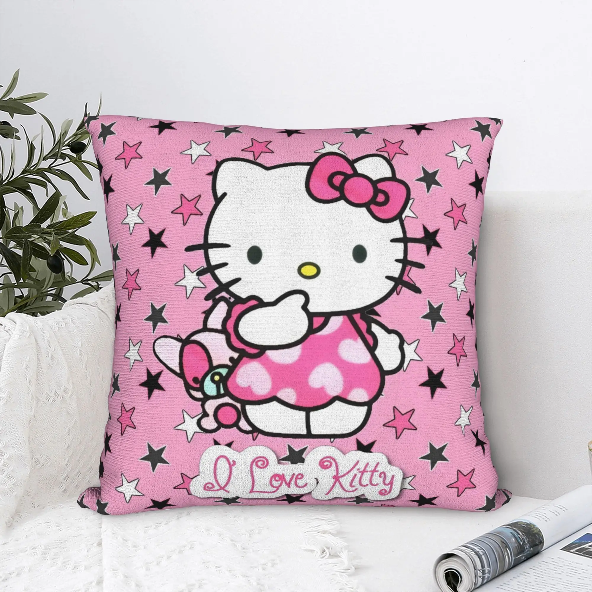 Hello Kitty Star Cartoon Pillowcase Polyester Cushion Cover Decorative Throw Pillow Case Cover Home Square 45X45cm