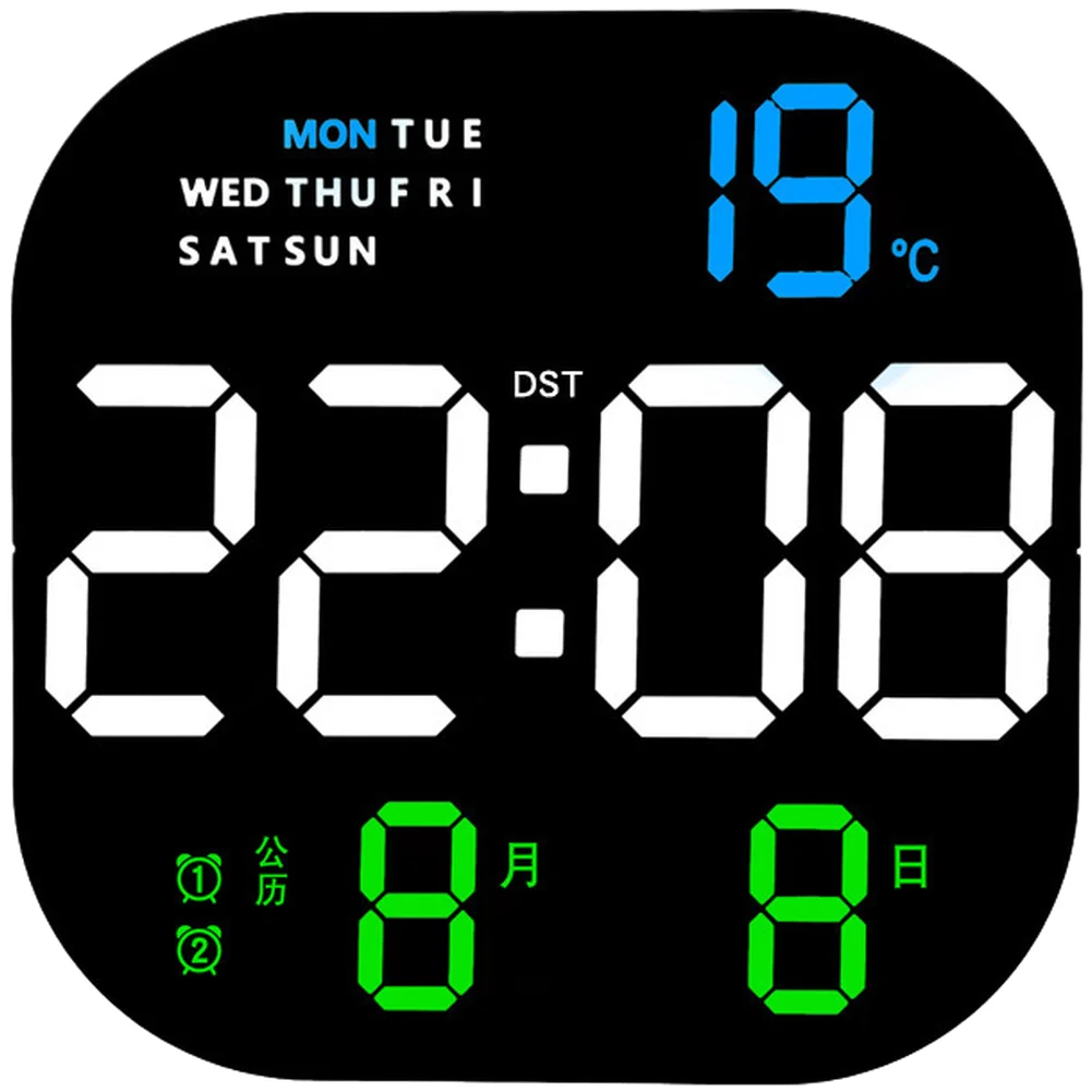 LED Digital Wall Clock 22.8cm Square Alarm Thermometer Calendar Weekday Show Remote Operated Brightness Sensor Home Decor Kit