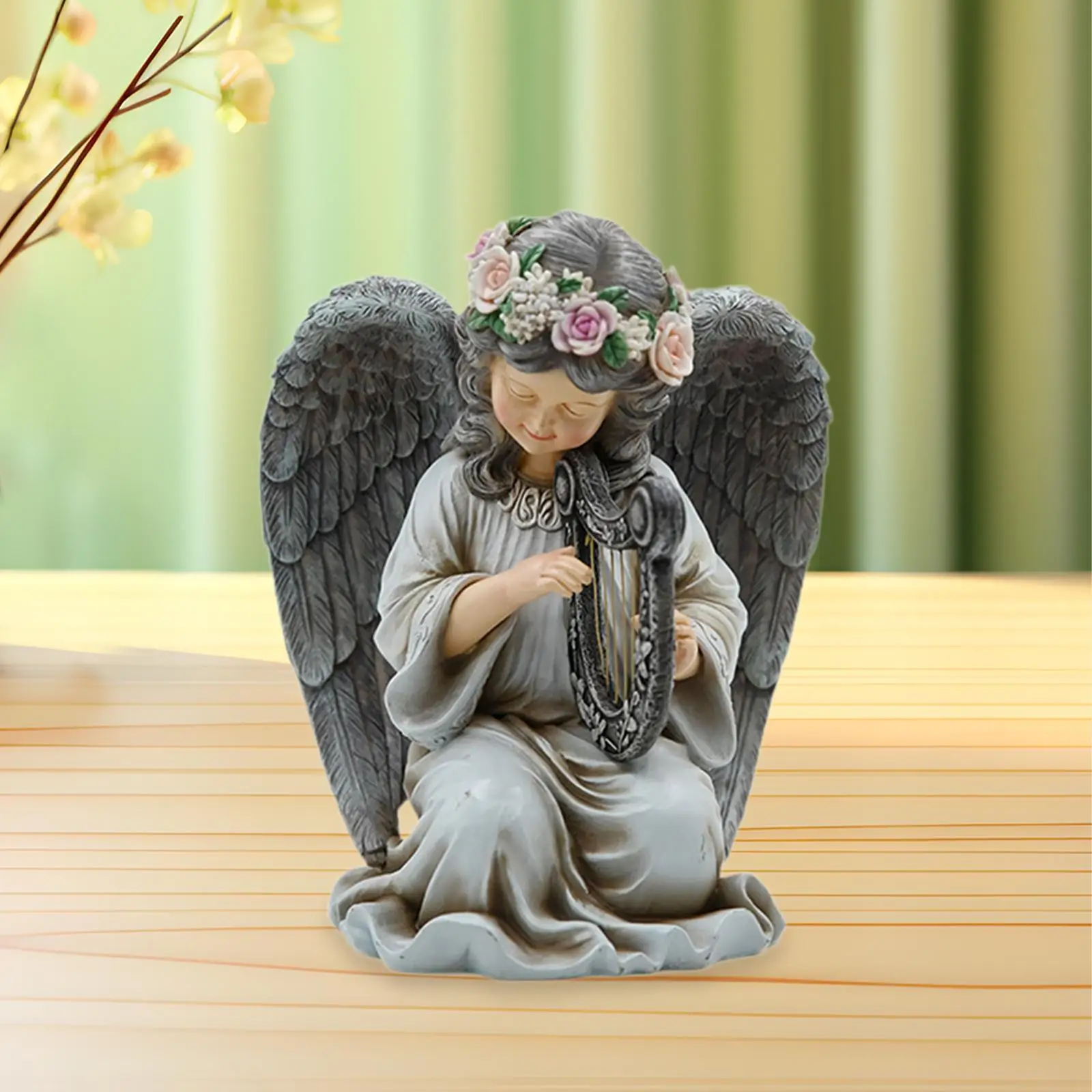 GARDEN ANGEL STATUE: Unique and adorable patio decor, an angel with beautifully crafted wings and vibrant colors. She wearing a garland and cocks her head slightly to one side while praying. At dusk, the surrounded flowers will automatically glow.