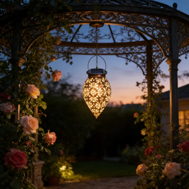 Outdoor Water Drop Shaped Solar Projection Light Waterproof Hollowed-out for Garden Patio Stair Fence Street Landscape Balcony