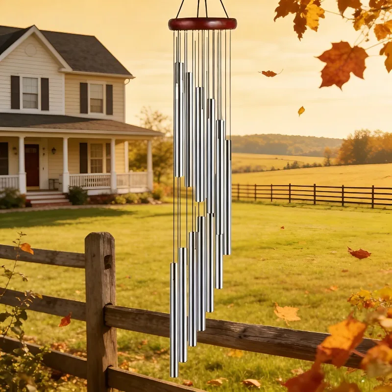 1pcs 12-Tube Rotating Wind Chimes Wooden Top Aluminum Tubes Outdoor Windchimes for Garden Patio Balcony Home Decor