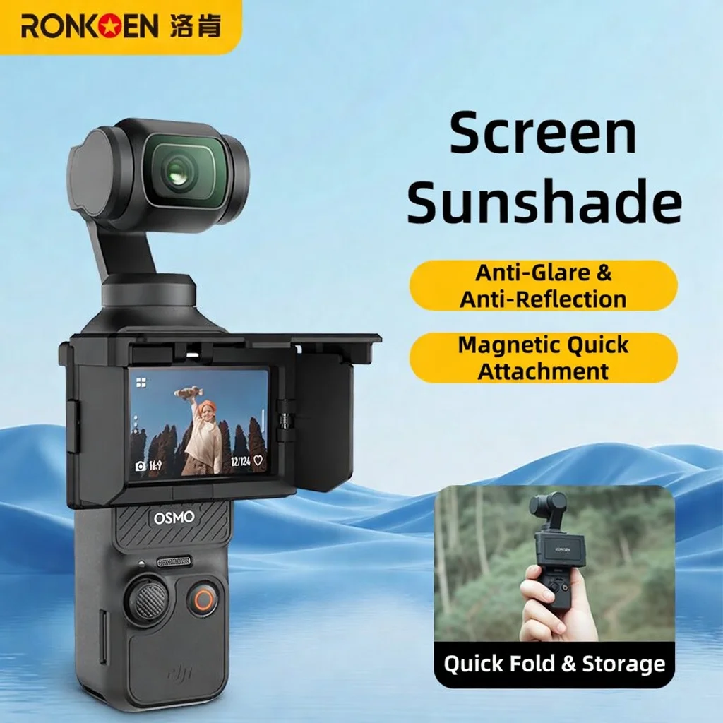 Ronkoen For DJI Osmo Pocket 3 Screen Hood Magnetic Foldable Anti-Glare Sunshade Lightweight 14g Action camera accessories