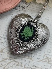 This Heart Silver Locket Black and Green Rose Gothic Love Necklace is a charming and unique piece of jewelry perfect for bridal or wedding occasions.